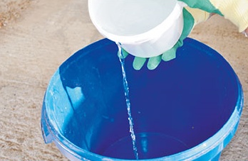 - Připravte si sadu nářadí na realizaci: Nerezové hladítko, odměrka nebo váha, nádoba na míchání pojiva (min. 2 l), vědro (min. 20 l) pro míchání směsi, nízko otáčkové míchadlo (vrtačka s regulací otáček), separátor na bednění (PE fólie, nebo vepřové sádlo), aceton, ochranné rukavice, brýle, pracovní oděv, hadry na očištění nářadí, metla, vysavač, PVC naběračka, stahovací lať.